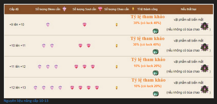 Hướng dẫn nâng cấp Item từ Level 1 đến Level 13